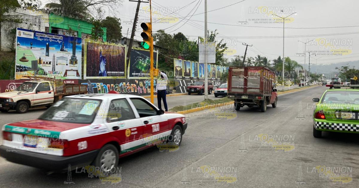 Tihuatlán, Ver.- A una semana de haber sido instalados, la mañana de este viernes entraron en operación las cuatro cabezas de semáforos tipo vela, ubicados en el crucero de bulevar Bicentenario y calle 16 de Septiembre de esta villa.