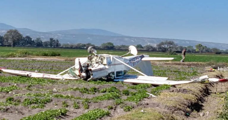 En Puebla, se desploma avioneta en campos de cultivo; hay dos lesionados