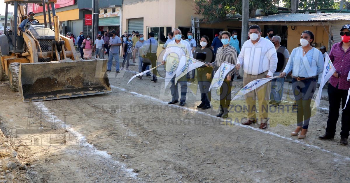 Tuxpan, Ver. – Al dar inicio a la obra de pavimentación con concreto hidráulico de la calle Héroes del 47, colonia Reyes Heroles, el Presidente Municipal Juan Antonio Aguilar Mancha afirmó que su gobierno no trabaja con palabras, sino con hechos y ejemplo de ello son las obras de infraestructura que se han realizado en colonias y comunidades a lo largo de tres años.