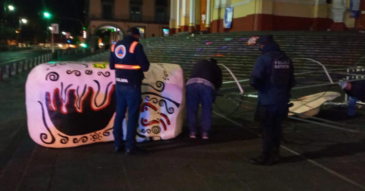 Personal de Gobierno del Estado procedió con el retiro del elemento decorativo.