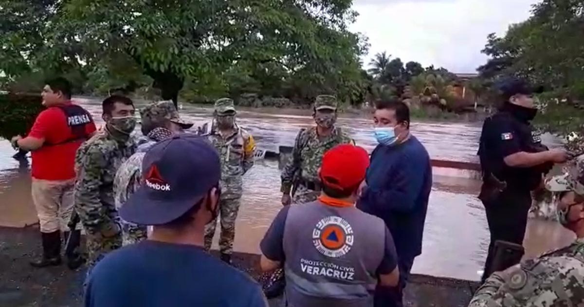 En el municipio de Agua Dulce, la Secretaría de Protección Civil atendió afectaciones por la corriente desbordada del río Aguadulcita.