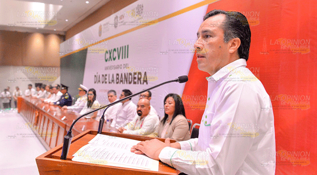 Boca del Río, Ver., 24 de febrero del 2019.- El gobernador Cuitláhuac García Jiménez encabezó la ceremonia por la 198 conmemoración del Día del lábaro patrio y destacó el honor que se debe rendir a todos los patriotas que dieron la vida por México para conceder justicia, soberanía y bienestar.