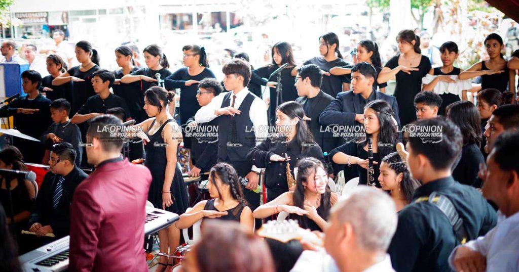 En tanto, estudiantes de la secundaria técnica No. 75, integrantes de la banda musical del plantel, interpretaron solemnemente el Himno Nacional Mexicano, ante la Banda de Guerra y Escolta del Séptimo Batallón de Infantería.