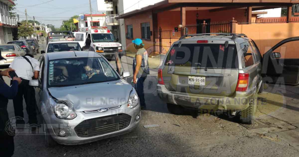 En el lugar colisionaron, un automóvil Ford Ikon, color gris, matrícula YKJ 6015 del Estado, manejado por Mayra Méndez, de 32 años, con domicilio en la colonia Azteca, de este puerto.