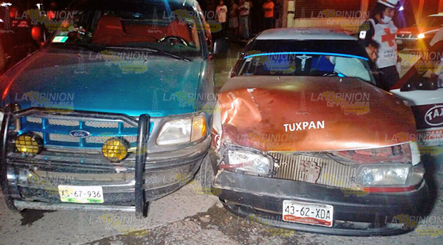 TÚXPAM.- La falta de precaución para conducir provocó un fuerte choque en el que por fortuna no resultaron personas lesionadas pero si elevados daños materiales; autoridades de vialidad tomaron conocimiento y realizaron las diligencias correspondientes.