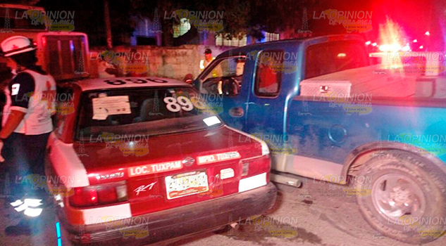 En el lugar, uniformados hallaron colisionadas una camioneta Ford Lobo F150, color verde, con placas de circulación XS67936 del Estado, conducida por Salvador Azamar Reyes, domiciliado en la colonia 20 de noviembre, de la congregación mencionada y un taxi con número económico 896, matrícula 4362XDA del Estado, manejado por por Agustín Morales Sánchez.
