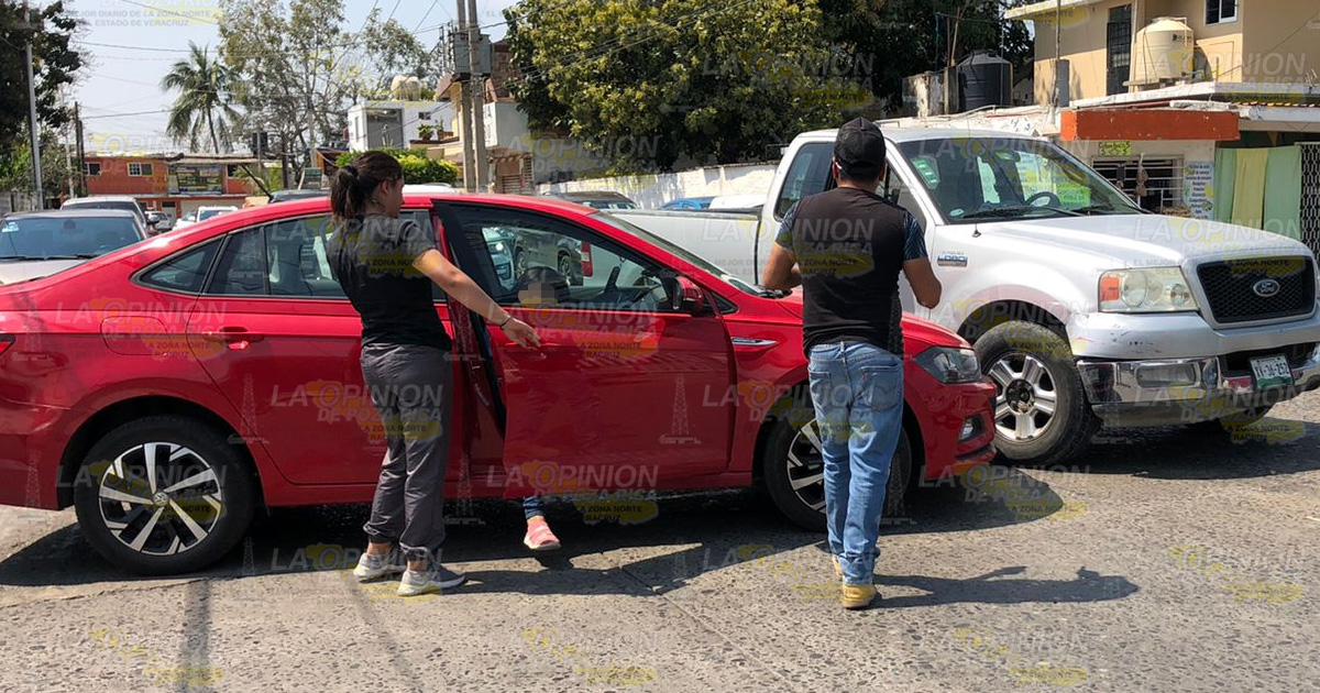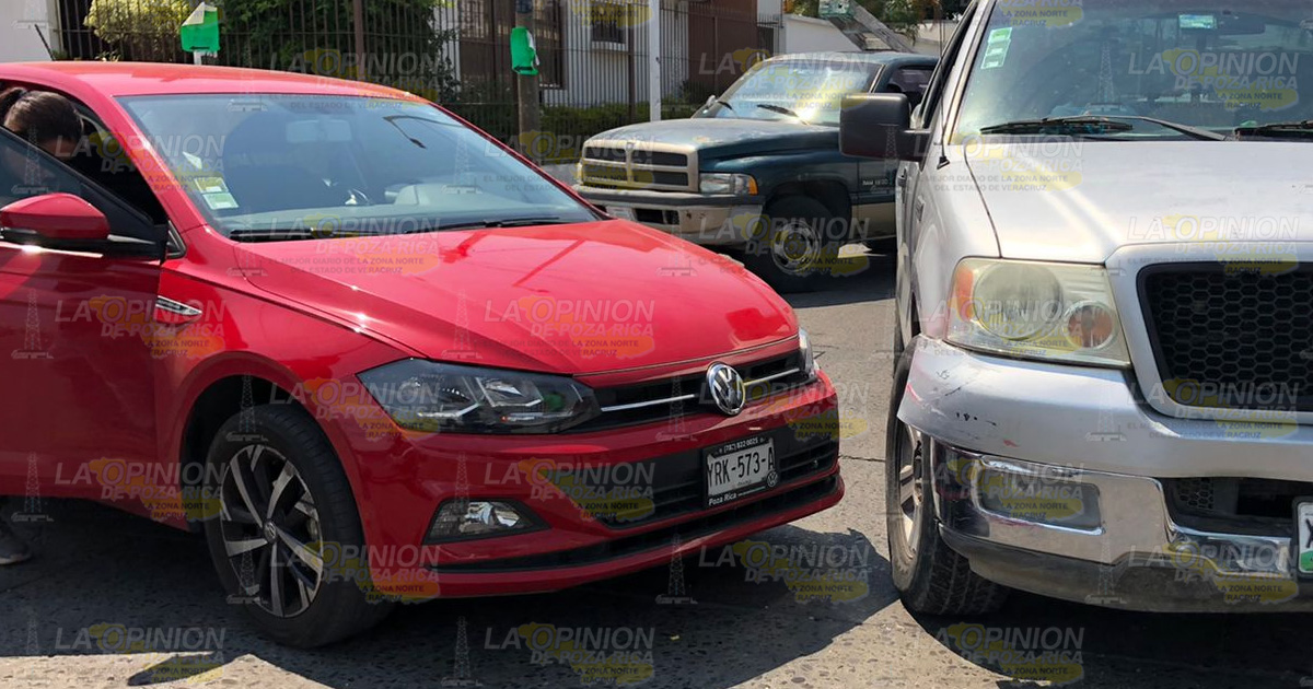 Poza Rica, Ver.- El exceso de velocidad y la imprudencia provocaron fuerte accidente la tarde del lunes en la esquina de la calle Ávalo e Ignacio Comonfort de la colonia Benito Juárez entre una camioneta Ford Lobo, color gris, que circulaba con preferencia vial y un auto deportivo tipo Virtus marca Volkswagen cuyo conductor intentó ganar el paso.