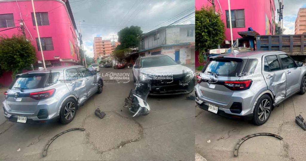 Poza Rica, Ver.– Aparatoso accidente entre dos camionetas, se suscitó la mañana de este lunes entre una camioneta Toyota y otra KIA en el cruce de las calles Sonora y Querétaro de la colonia México, que dejó cuantiosos daños materiales.