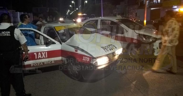 Poza Rica, Ver.- Tremendo encontronazo se dieron dos taxis de esta ciudad, en donde una mujer resultó lesionada. Este percance se dio en el cruce de la calle Ignacio Allende con Uruguay de la colonia 27 de Septiembre, en donde se encontraron las dos unidades de alquiler. Al lugar llegaron elementos de la policía municipal, … Sigue leyendo Encontronazo entre dos taxis deja una mujer lesionada
