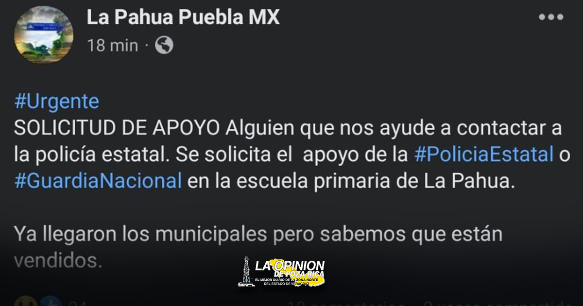 A través de redes sociales pobladores solicitaron la precencia de la Guardia Nacional, Policía Estatal y Coordinación Regional Educativa (CORDE) , ante la desconfianza de la Policía Municipal del actual administración que encabeza Gildardo Vargas García.