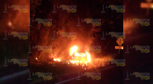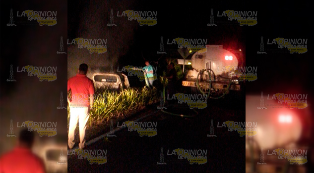 Gutiérrez Zamora, Ver.- Completamente envuelto en llamas fue encontrado a un costado de la carretera federal un taxi del municipio de Gutiérrez Zamora la mañana de este jueves el reporte fue hecho alrededor de las 5:30 horas por lo que elementos de la Policía Municipal y de Protección Civil se trasladaron al punto, donde intentaron sofocar las llamas que ya habían consumido en su totalidad al vehículo compacto, una vez que estas fueron apagadas pudieron corroborar que dentro de la unidad se encontraba un cuerpo completamente calcinado.