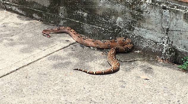 Una víbora fue encontrada en las inmediaciones del parque Juárez, aparentemente salió de una coladera cercana a la primaria Maria Enriqueta, una persona evitó que cruzará el bulevar, esperan el arribo de personal especializado de PC, trabajadores de la primaria resguardan para que no entre a la institución.