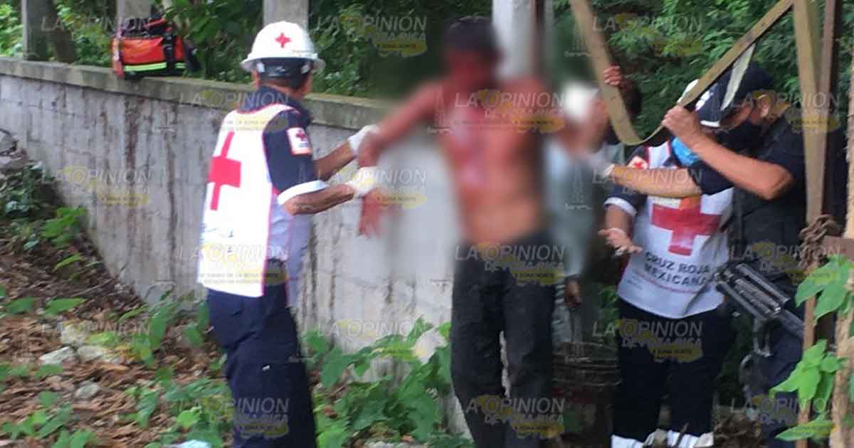 Los vecinos que se percataron del sujeto que gritaba, al encontrarse en el interior del terreno una barda impedía ver a simple vista la situación del lesionado.