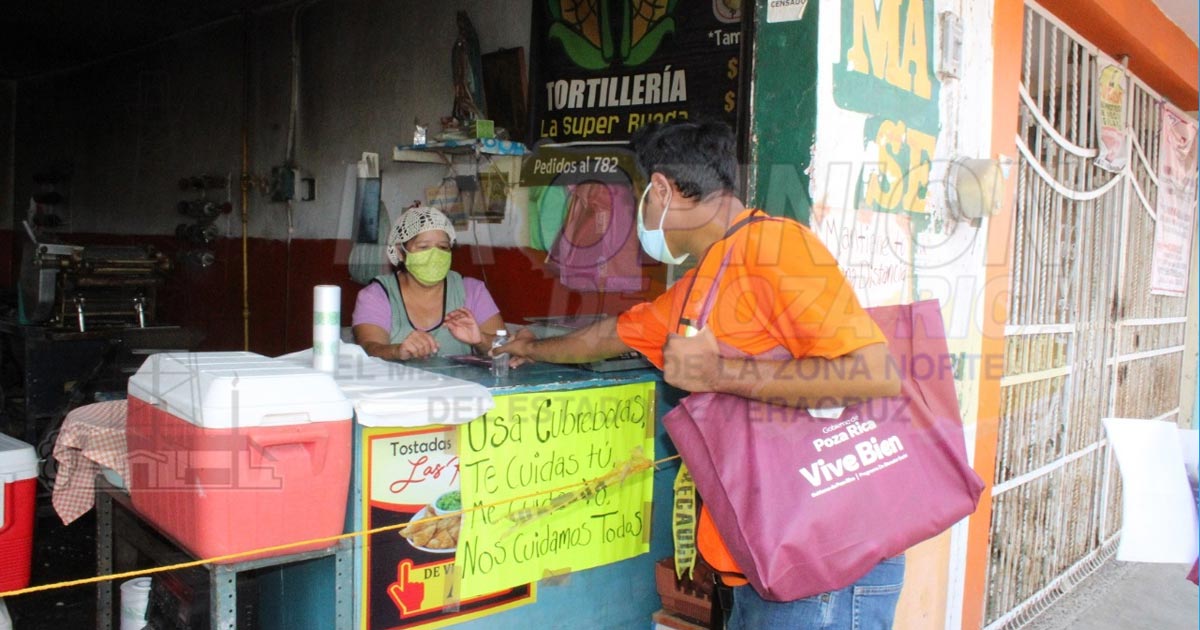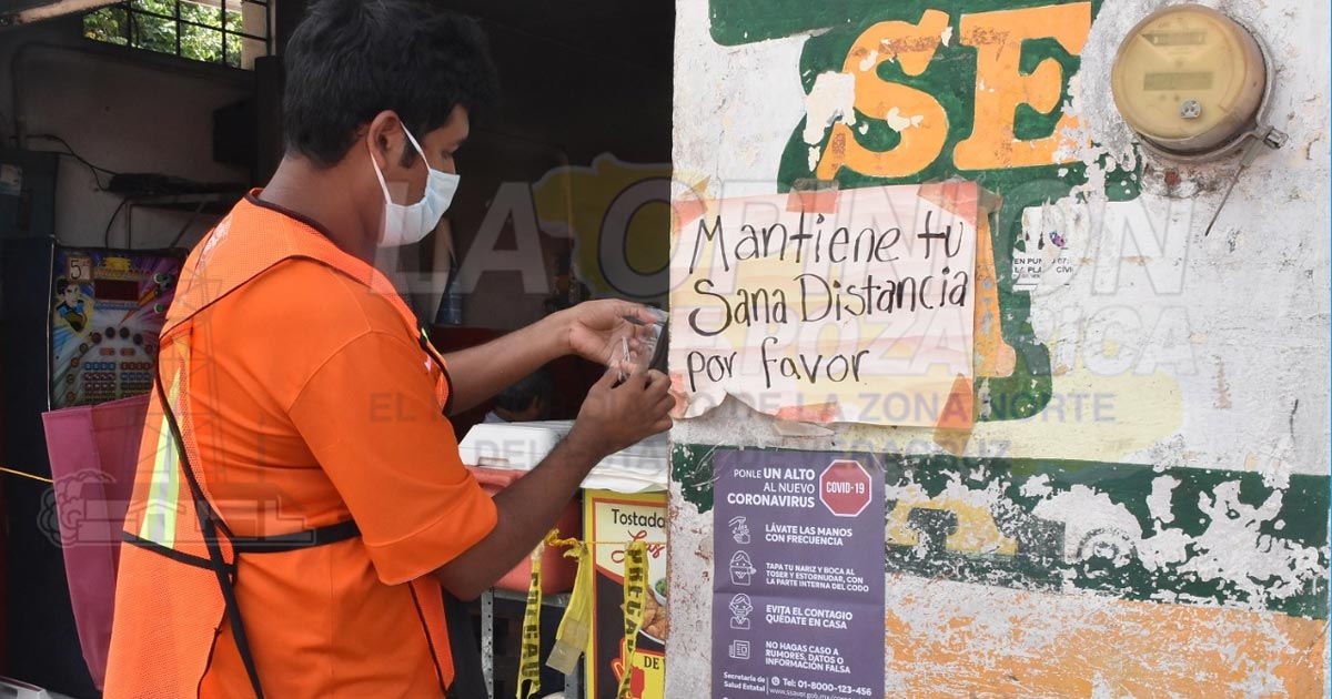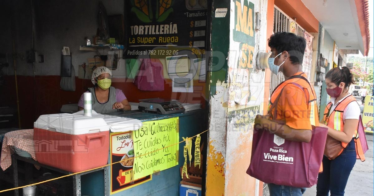 Poza Rica, Ver.- El Gobierno de Poza Rica continúa con las labores de concientización hacia la población en relación a las medidas de prevención para evitar el avance en las estadísticas de la enfermedad provocada por el Virus Sars-Cov-2 (COVID-19), lo anterior por instrucciones del alcalde Francisco Javier Velázquez Vallejo preocupado por la salud de la población, por lo que este martes se realizó un recorrido en las viviendas y negocios que se encuentran establecidos en la unidad habitacional Gaviotas y asimismo en la colonia La Rueda que se encuentra cercana a ese sector, en una labor desarrollada por personal asignado a la Unidad de Salud Municipal, en donde se está distribuyendo gel antibacterial para mantener la higiene de manos, además de cubrebocas, así como un folleto que contiene información sobre las medidas preventivas contra la pandemia, en donde se incluye el mantener la sana distancia entre las personas y evitar el contacto físico.