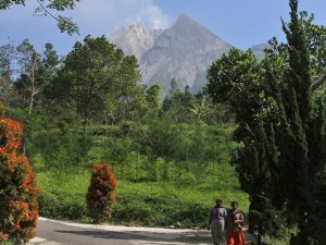 Se encuentra a unos 28 kilómetros al norte de la ciudad de Yogyakarta, que tiene una población de 2.4 millones y miles de personas viven en los flancos del volcán.