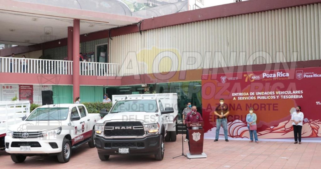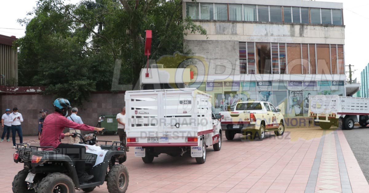 Poza Rica, Ver. – Al puntualizar que en el Gobierno de Poza Rica “Todos los dineros que se manejan en el ayuntamiento, sin excepción se canalizan a la mejora y el bienestar de la población”, el alcalde Francisco Javier Velázquez Vallejo, cerró este jueves sus actividades de carácter público con la entrega de 5 vehículos para diversos departamentos que componen la administración municipal. En global, tras una jornada intensa de entrega de apoyos entre los que también se incluyeron obras educativas, de fortalecimiento a la seguridad y de beneficio social, la presente administración entregó beneficios por casi $ 7 millones de pesos.