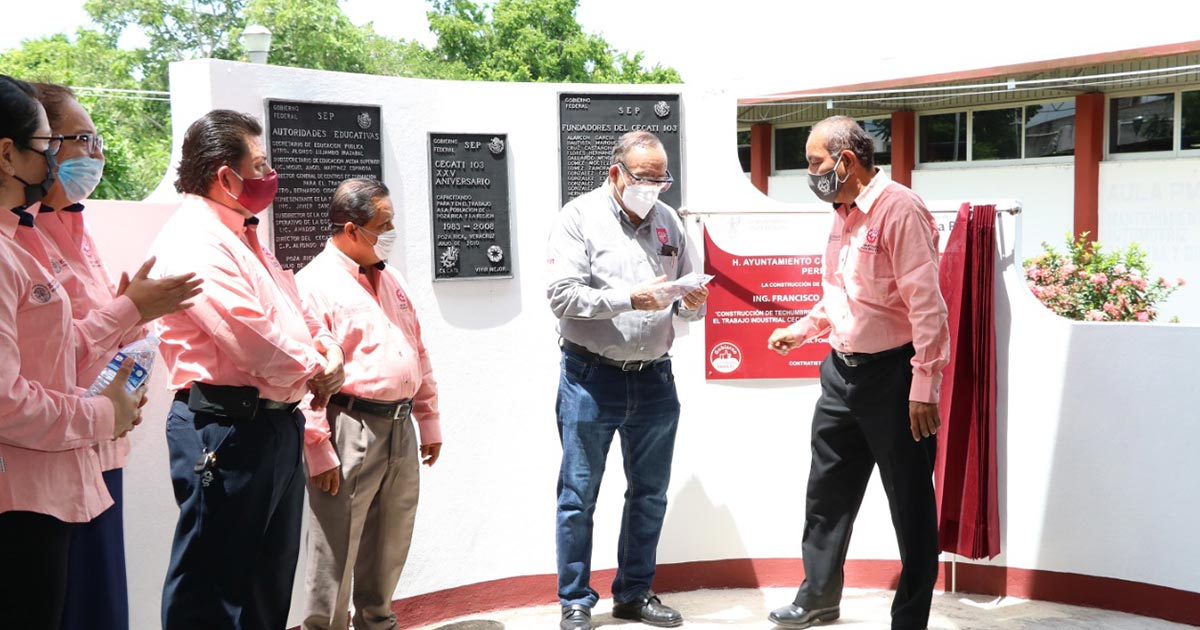 Poza Rica, Ver.- Respaldando las acciones de prevención impulsadas por parte de la presente administración municipal para prevenir los contagios de la pandemia provocada por el virus Sars-Cov-2 (COVID-19), el Centro de Capacitación para el Trabajo Industrial (CECATI) 103, que se encuentra ubicado en la colonia Revolución, llevó a cabo la entrega de Mil 400 cubrebocas elaborados por parte del personal del plante y asimismo por los estudiantes, los cuales cuentan con características de impermeabilización para garantizar el cuidado a la salud de la población, en un acto realizado la tarde de este jueves, y que fueron recibidos por el alcalde Francisco Javier Velázquez Vallejo, quien agradeció el respaldo de los estudiantes del plantel y de su cuerpo docente, que representa un “donativo muy importante, pues no son solo para el personal del Ayuntamiento, sino para la gente, para los ciudadanos que en este momento no tengan un cubrebocas”, y recordó que precisamente la administración que encabeza ha estado entregando durante la pandemia este tipo de implementos que sirven para proteger la salud de los ciudadanos, para que se protejan y con ello cuiden su salud, pues aseguró “Necesitamos cuidarnos todos”.