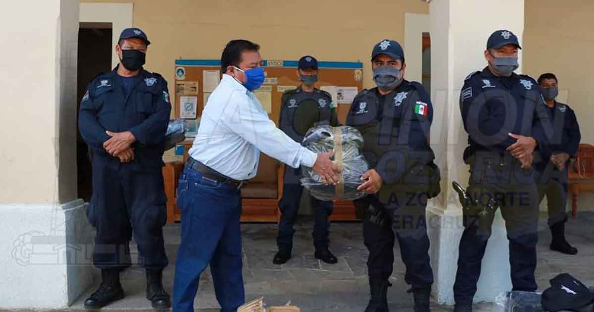 Zozocolco de Hidalgo, Ver. – El alcalde Faustino Ramiro Velázquez realizó la entrega de uniformes completos a los elementos de la Policía Municipal, para que sean debidamente identificados al momento de acudir a los auxilios.