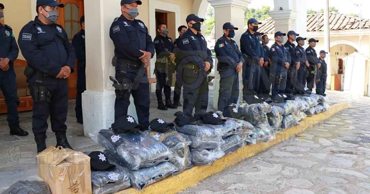 La entrega de los uniformes consiste en pantalón táctico operativo, camisola tipo guerrera, playeras manga corta y larga, chamarras confort térmico, cinturón, herramientas de trabajo cómo son las esposas, lámparas recargables, piernera y gorras.Durante la entrega de uniformes a los guardianes del orden se contó con la presencia de la presidenta del DIF Elvira Sótero Vázquez, sindica única Teresa Gutiérrez Grande y el regidor Francisco Pérez.