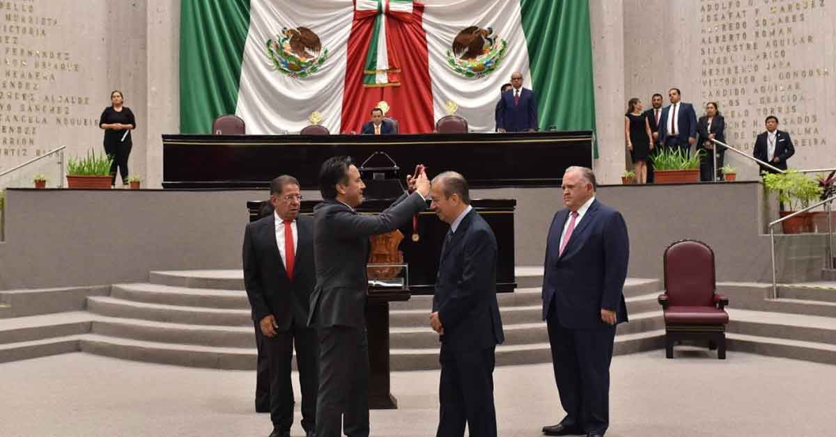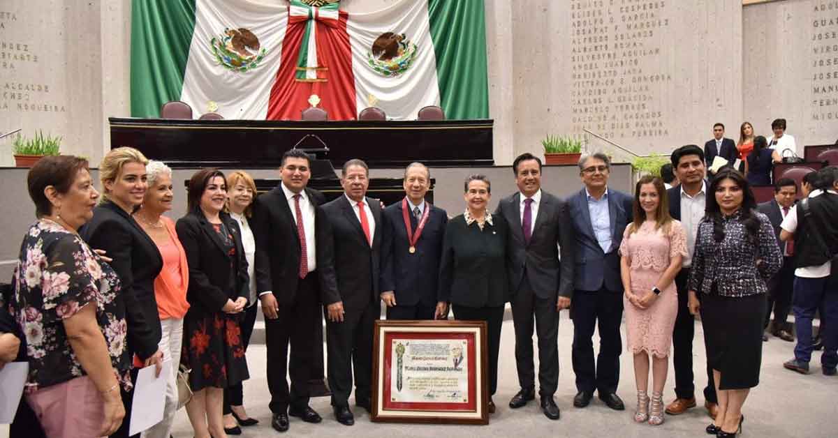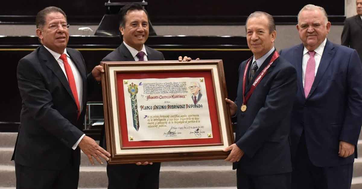 Xalapa, Ver.- En reconocimiento a su sólida formación científica, amplia experiencia en la investigación y larga trayectoria en la innovación y aplicación de la tecnología al servicio de la educación pública, la LXV Legislatura del Estado entregó la medalla Heberto Castillo Martínez al maestro Marco Antonio Rodríguez Revoredo.