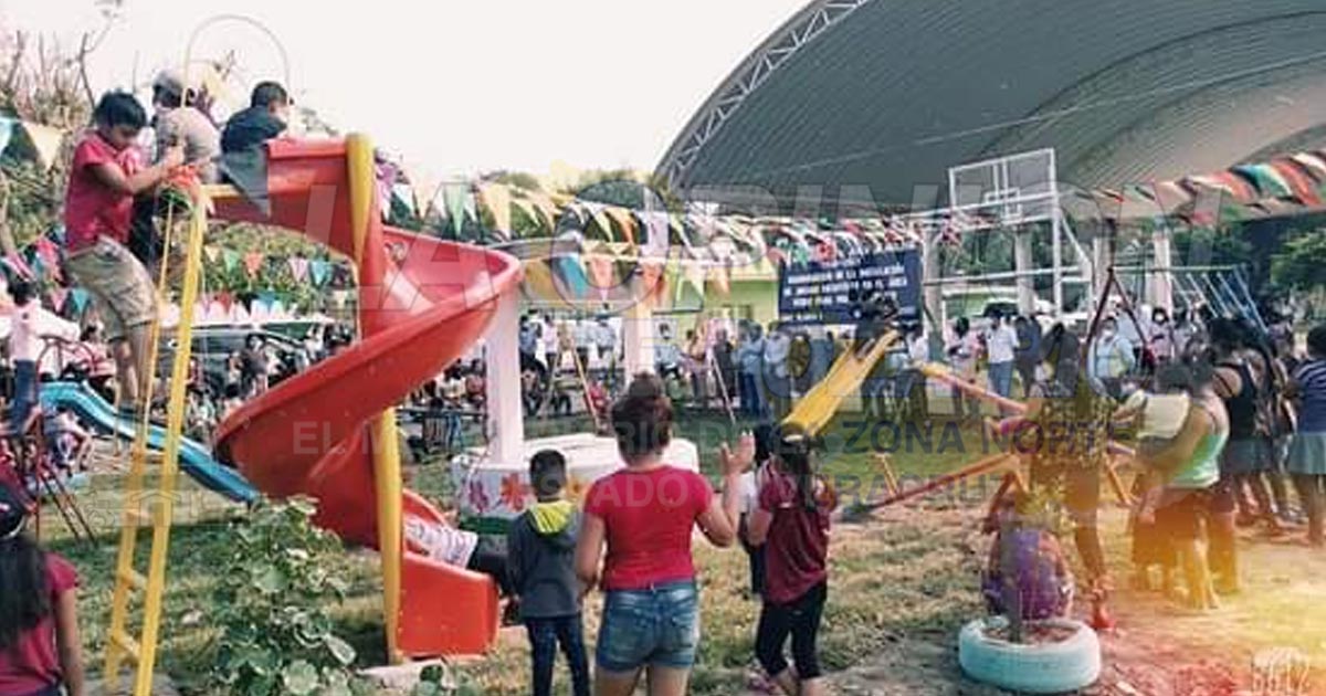 Cazones de Herrera, ver. – No todo es inversión para la infraestructura del municipio, los niños y los jóvenes también requieren de espacios dignos y seguros, donde poder jugar, divertirse con las medidas sanitarias que exige la pandemia, indicó el alcalde Zenón Pacheco Vergel, al inaugurar el parque infantil en la comunidad de Cruz Blanca Uno.