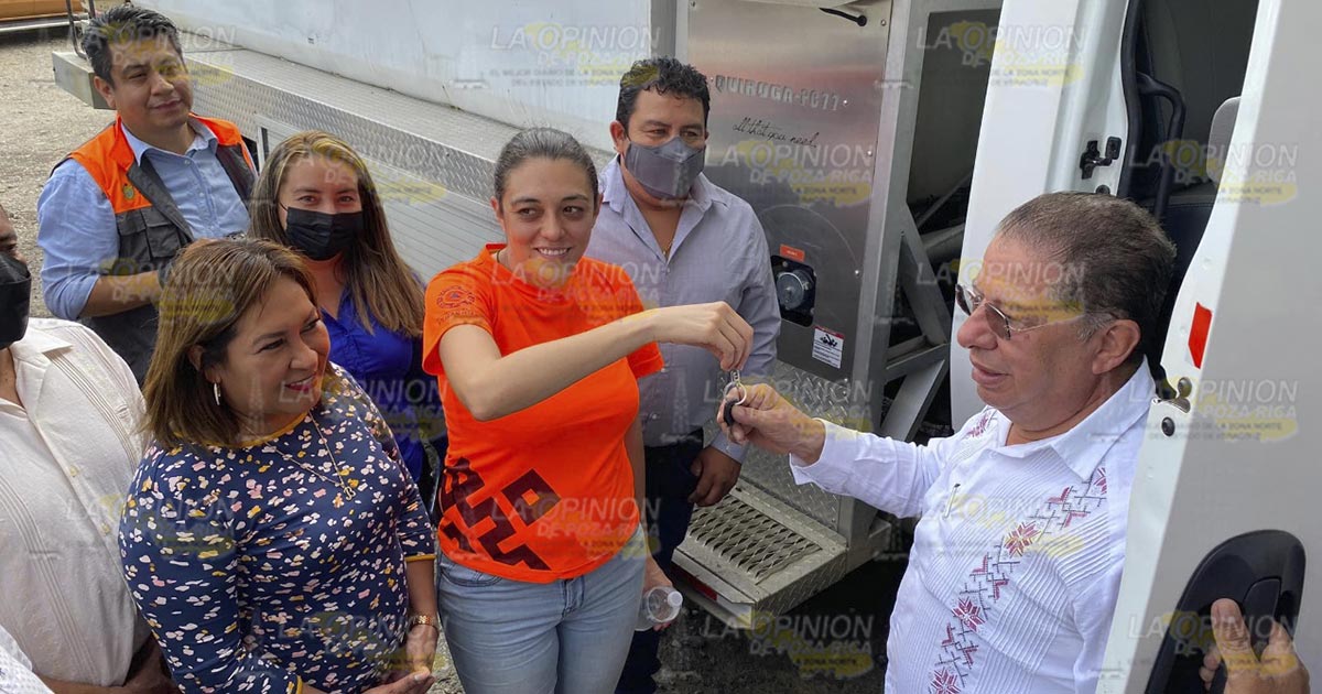 Se trata de una camioneta para la Dirección de Protección Civil y un camión tipo pipa de moto bomba con capacidad de 10mil litros para los bomberos, cuyas llaves fueron recibidas por el alcalde José Manuel Pozos Castro de manos de Guadalupe Osorno Maldonado, titular de la Secretaría de Protección Civil.