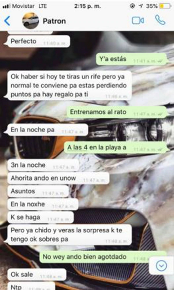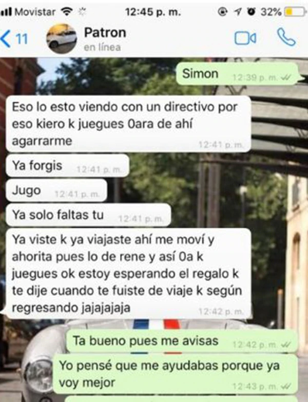 Pero la situación se hizo insostenible cuando ‘El Patrón’ comenzó a decirle al jugador que las pocas citaciones que él pensaba que había conseguido con el sudor de los entrenamientos no eran fruto de sus cualidades futbolísticas, sino de su poder en el equipo. En el artículo de Récord se incluyen unas conversaciones de Whatsapp donde Fuentes le aclara al futbolista que podía ayudarlo a cumplir su sueño, siempre y cuando le hiciera caso en «todo lo que le pidiera».
