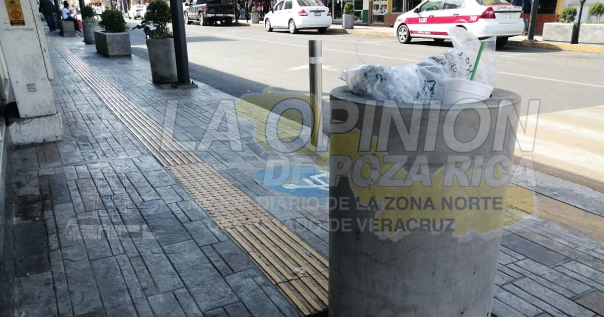 Así mismo, las superficies podotáctil para personas invidentes ubicada sobre la calle 4 oriente se encuentra dañada, por lo que los ciudadanos colocaron un pesado basurero para que terceros no se vieran afectados.