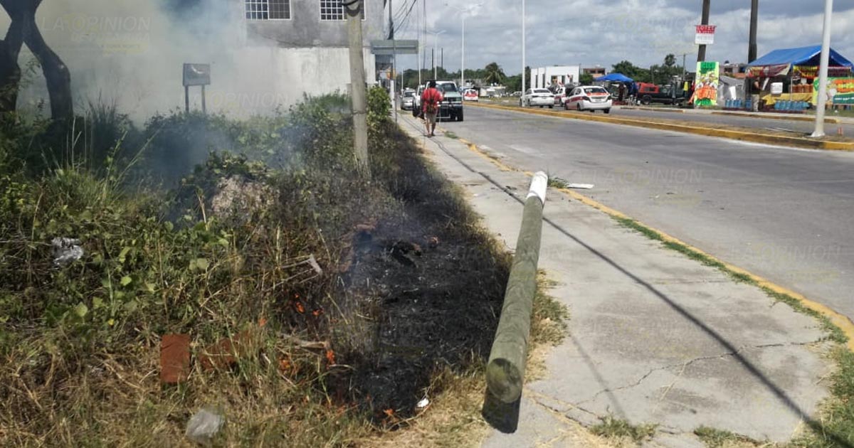 Tras el impacto, el poste golpeó el cableado eléctrico y ocasionó que los tensores se rompieran y se produjeron chispas que cayeron en el pasto seco de un predio baldío dando lugar a un incendio que obligó a personal de bomberos acudir a sofocarlo.