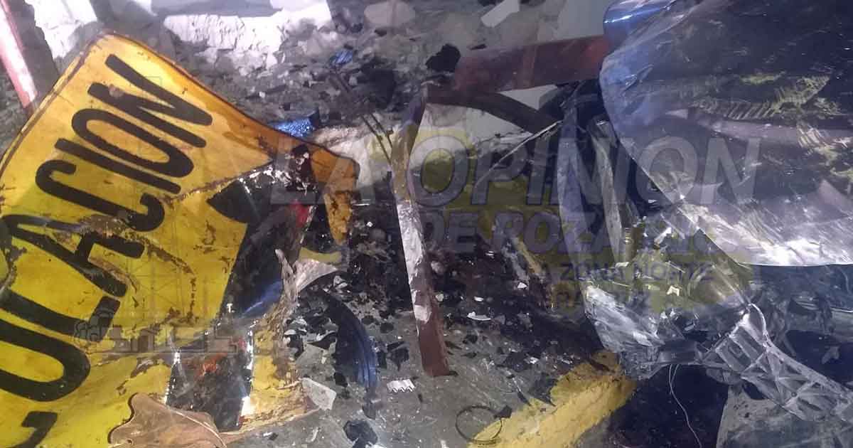 Al llegar al punto indicado, en lugar de dar vuelta a la derecha para incorporarse a la avenida Miguel Hidalgo, se fue de largo y se estampó contra la barda de una casa particular, derribando además un señalamiento de tránsito, que precisamente marcaba Precaución.