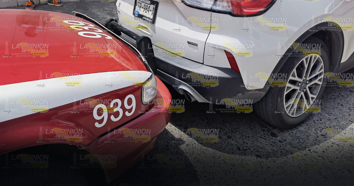 En el lugar, el taxi número económico 939, matrícula A318XEK del Estado, guiado por Vidal S.M., de 59 años, con domicilio en el Infonavit Jesús Reyes Heroles, de esta ciudad se impactó por alcance con un camioneta.