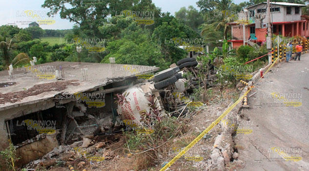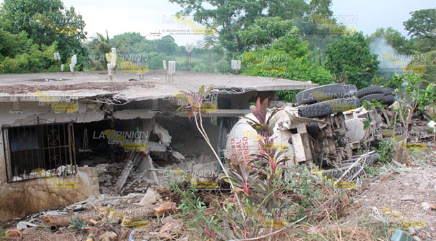 Coatzintla, Ver.- Un tráiler que cayó a una vivienda y la destrozo, donde desafortunadamente el operador de la unidad falleció, la compañía PHC no le quiere pagar los gastos al propietario de la vivienda, por lo que este les negó que sacaran su tracto camión de su terreno y los denuncio.
