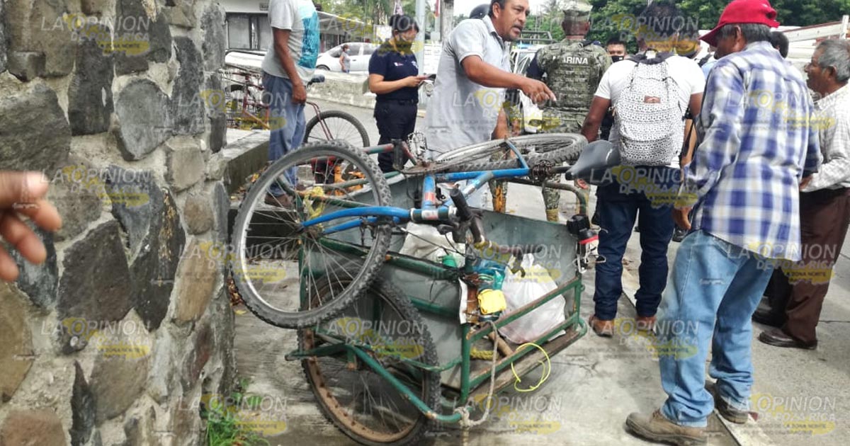 Por la información obtenida se pudo conocer que el ahora lesionado manejaba un triciclo y se desplazaba por la pendiente de la calle Río Nautla, del fraccionamiento mencionado y se dirigía hacia el bulevar Demetrio Ruiz Malerva pero le fallaron los frenos y terminó impactado en el costado derecho de un autobús de pasajeros de la línea TBN, con número económico 04, sin placas de circulación.