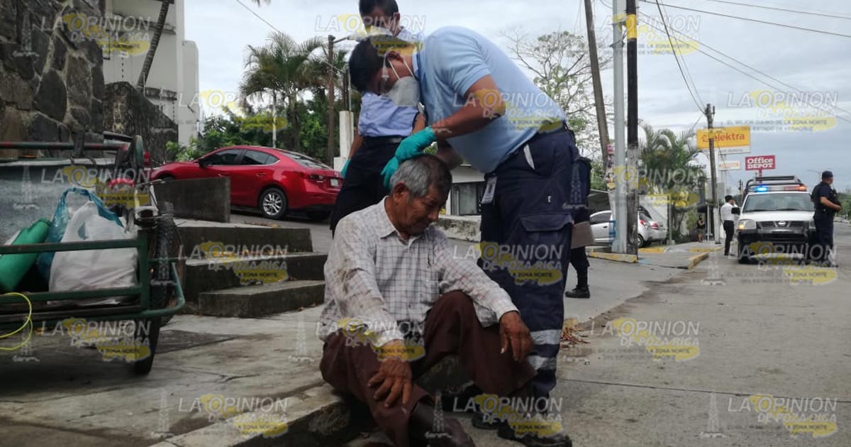 Tuxpan, Ver. – Jardinero quedó con una herida en la cabeza al estrellar el triciclo que manejaba en un autobús de pasajeros, paramédicos del grupo SUMA lo atendieron, pero este se negó a ser hospitalizado sin embargo accedió a que médicos del DIF Municipal le brindaran los primeros auxilios.