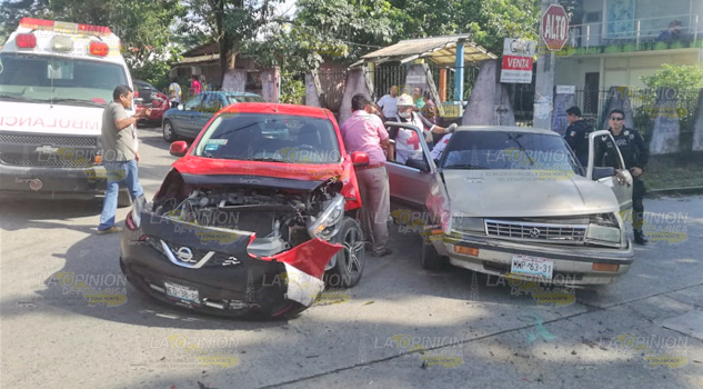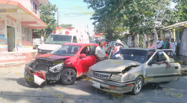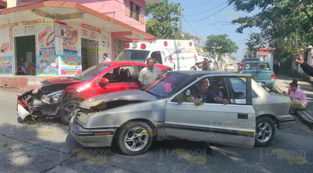 TÚXPAM.- Cuantiosos daños materiales dejó como saldo un aparatoso accidente entre dos automóviles, una mujer que viajaba en uno de los vehículos quedó lastimada pero se negó a ser trasladada a algún nosocomio.
