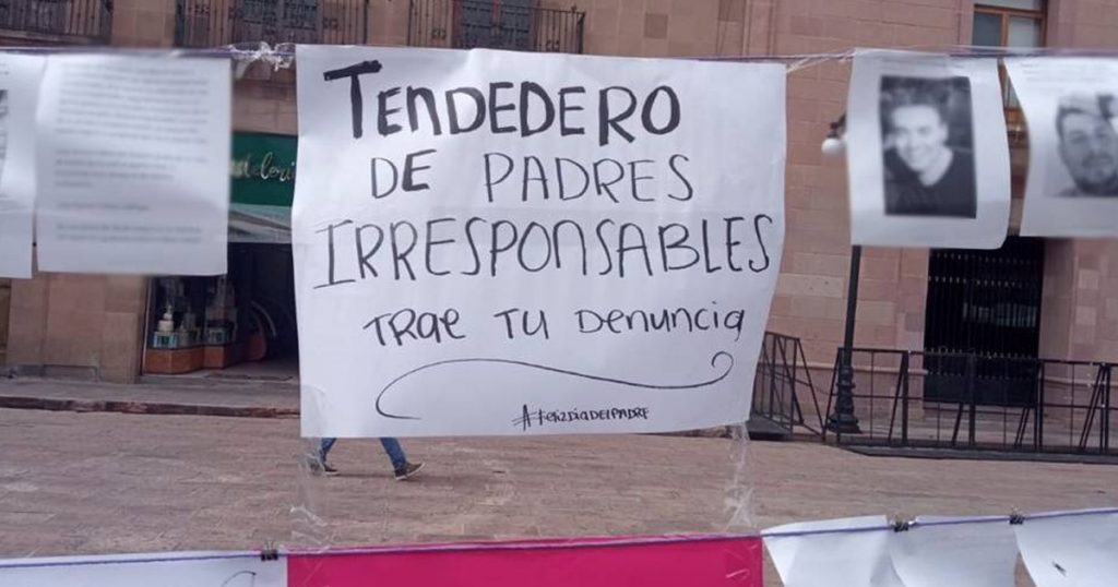 Con la frase «¡Feliz Día del padre… paga la pensión!», este domingo la Colectiva Feministas de la Cabecera en el Estado de México lanzaron un tendedero para exhibir a los deudores alimentarios.