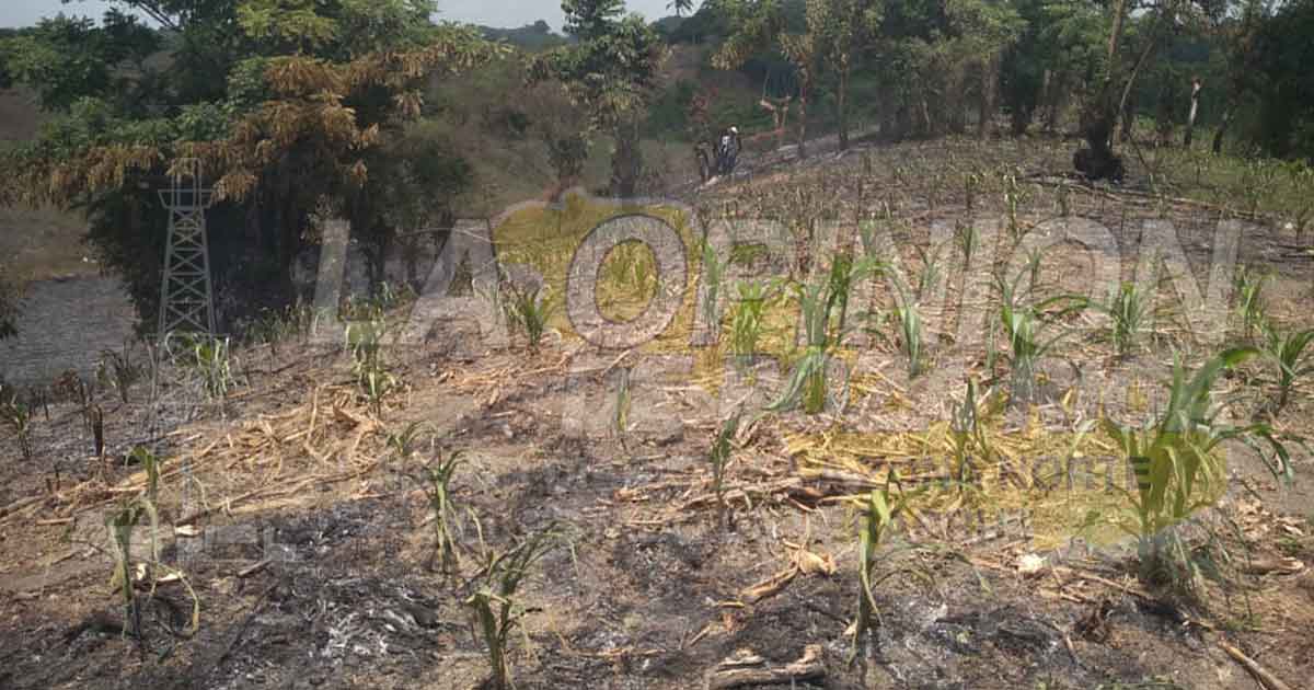 Espinal. Ver. – Más de media hectárea de sembradío de maíz quedo reducido a cenizas luego de que un incendio arrasó con las milpas.
