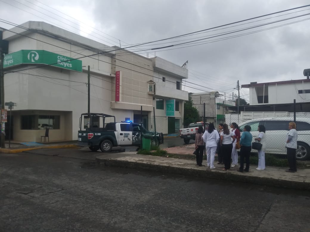 Poza Rica, Ver.- Una falla en la válvula de gas de un tanque estacionario de la Clínica Reyes ubicada sobre la calle independencia esquina con la calle La Palma de la colonia Manuel Ávila Camacho, hizo que se incendiara, por lo que fue necesario evacuar a los médicos y enfermera, así como de los pacientes que es encontraban en ese edificio y demás trabajadores, para evitar lesionados.