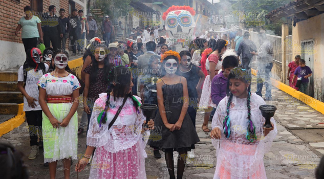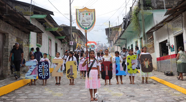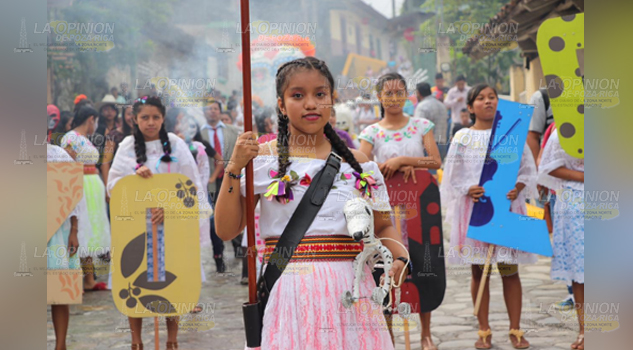 Zozocolco, Ver.- Desfile tradicional, primera actividad del Festival Internacional del globos de papel china 2019 en Zozocolco, conocido como la Joya de Totonacapan , conformado por contingentes municipales e instituciones educativas de la zona.