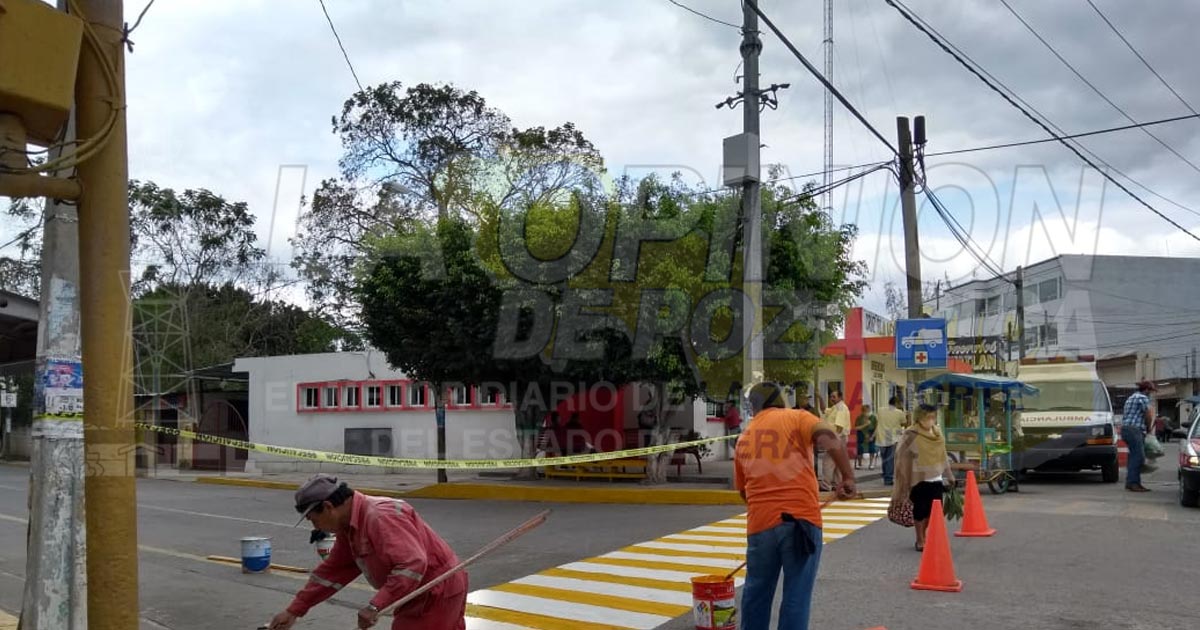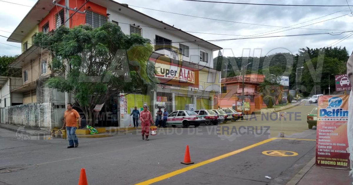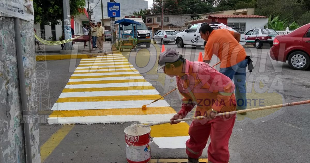 Tihuatlán, Ver. – Para continuar brindando seguridad vial a la población tihuateca y mantener una óptima imagen urbana de la villa, personal del Ayuntamiento realiza trabajos de pintura a las zonas balizadas en la cabecera municipal.