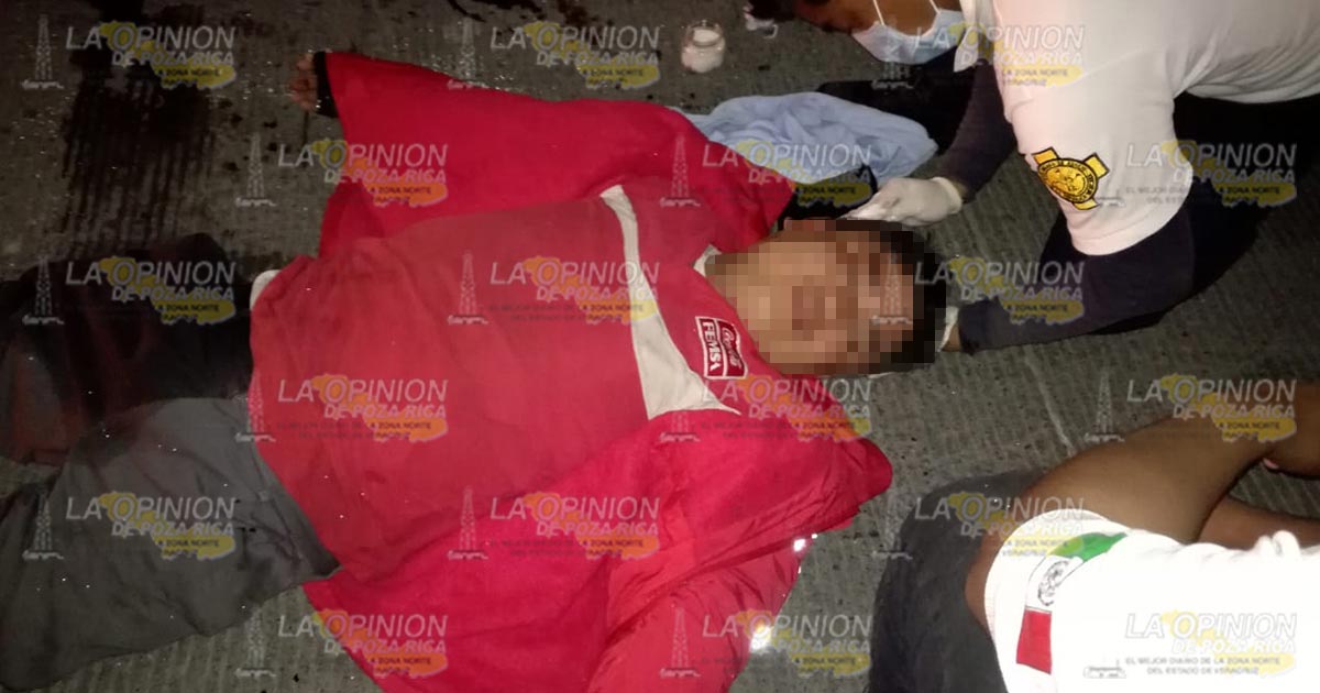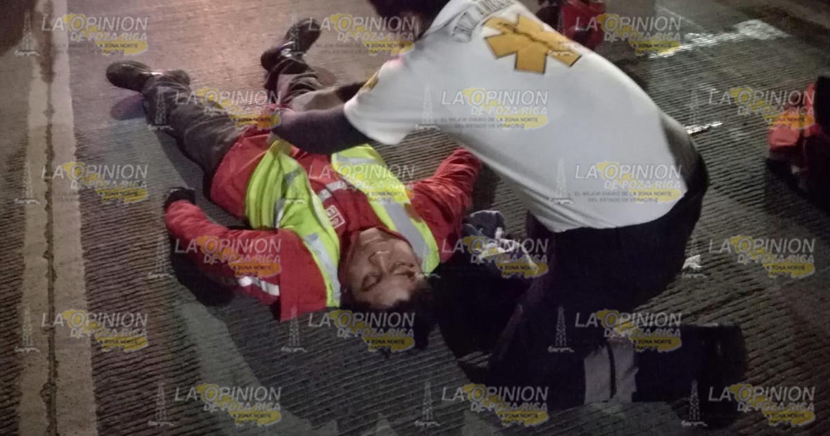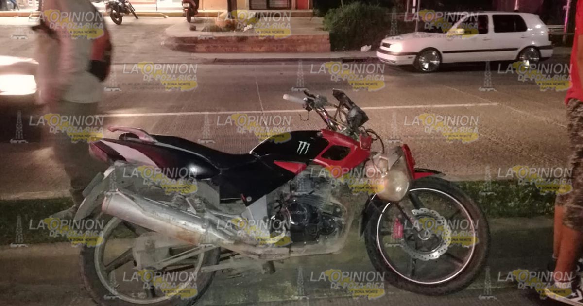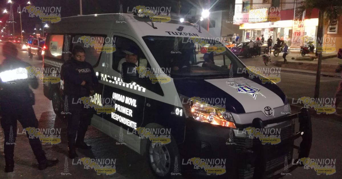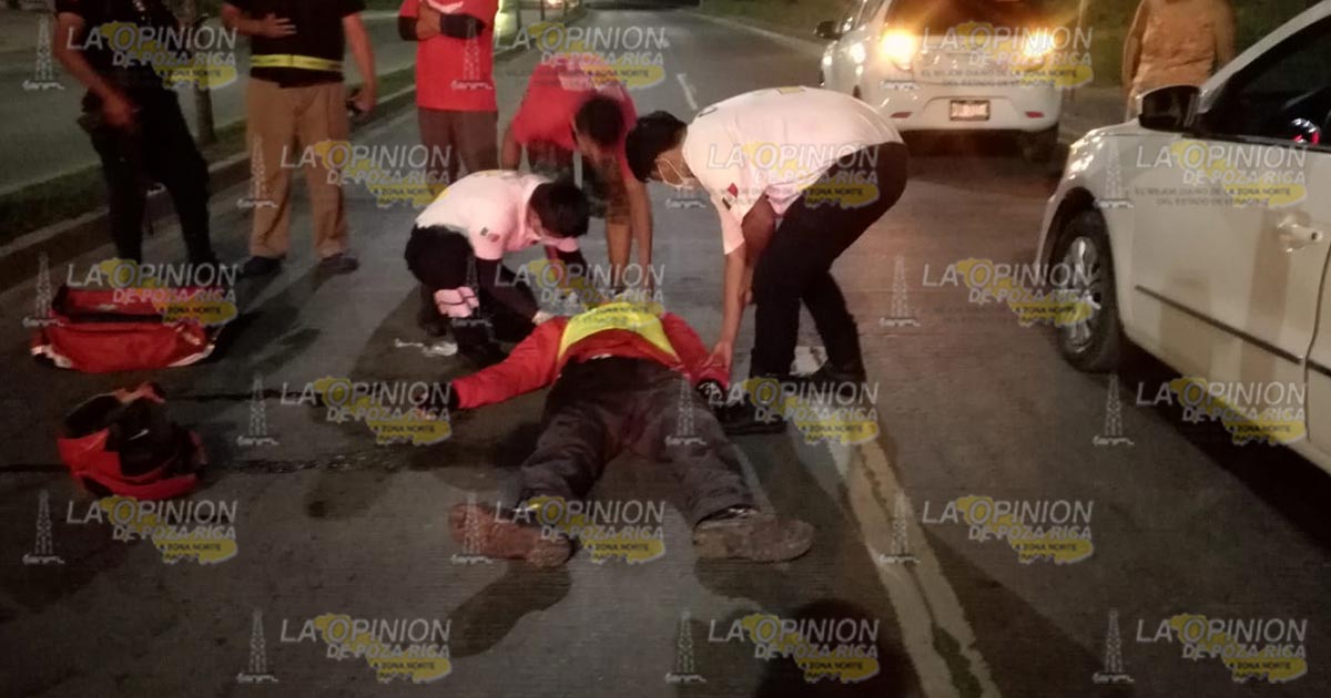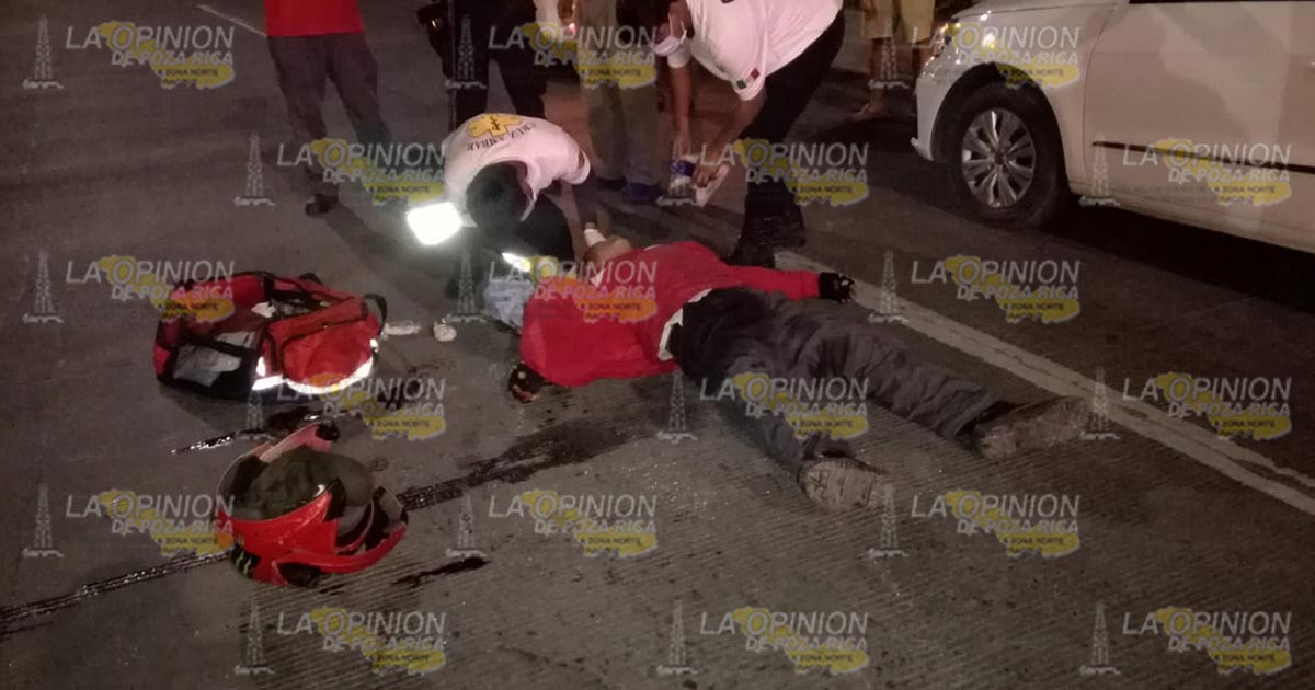 Tuxpan, Ver.- Empleado del grupo FEMSA sufrió un aparatoso accidente cuando viajaba en su motocicleta quedando gravemente herido; es de mencionar que ante la falta de ambulancias la víctima fue trasladado de una patrulla de la Policía Municipal.
