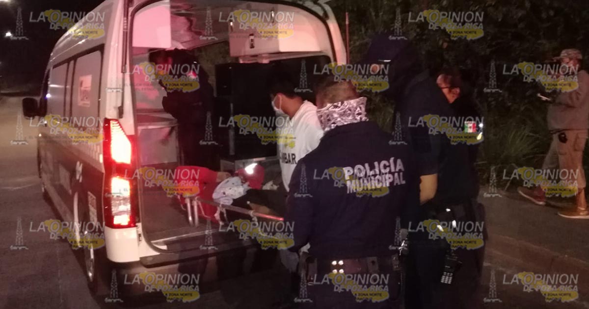 La víctima que no pudo aportar sus generales por la condición en la que se encontraba tuvo que ser trasladado a bordo de una patrulla de la Policía Municipal luego de que no hubiera servicio de ambulancias en esta localidad.