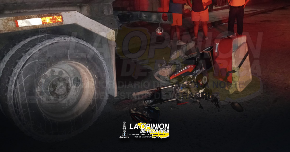 Tuxpan, Ver.- Motociclista que se impactó en una pipa estacionada en la avenida Insurgentes, de esta ciudad resultó gravemente herido y tuvo que ser internado en el Hospital Civil Emilio Alcázar para su atención médica.