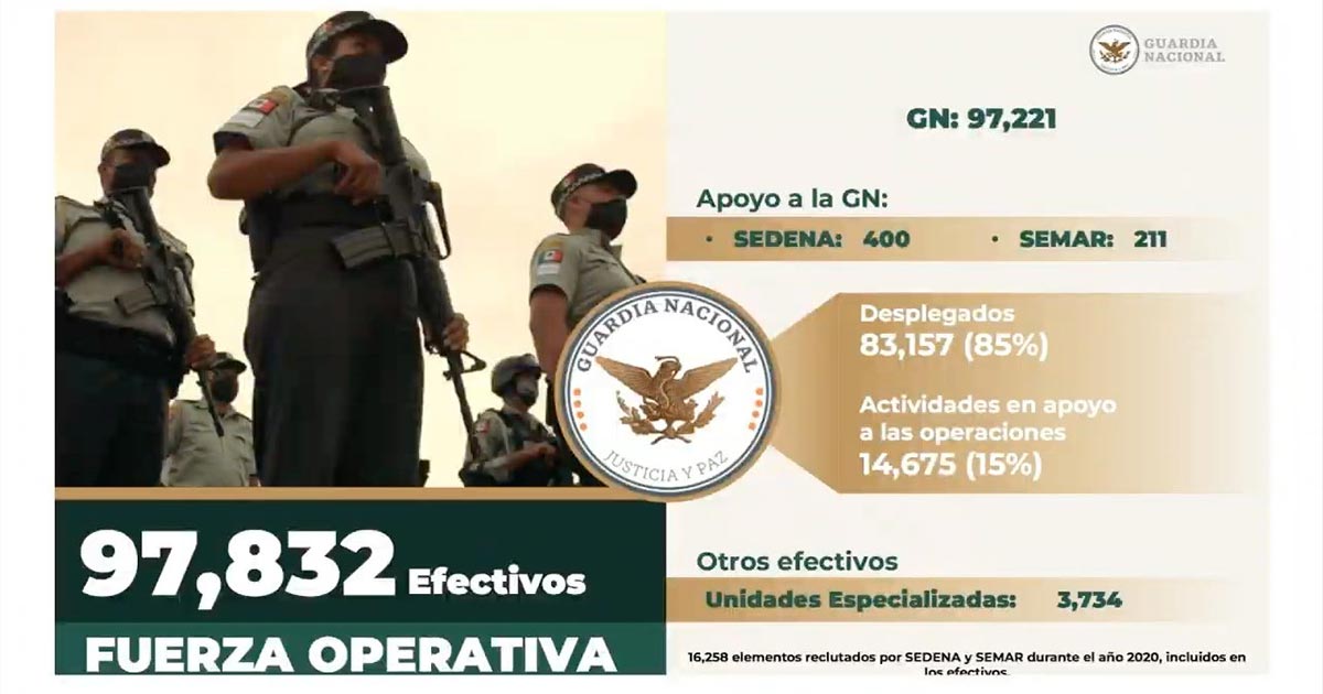 Durante la conferencia de prensa presidencial, el general precisó que 400 de los efectivos que integran la Guardia Nacional pertenecen a la Secretaría de la Defensa Nacional (Sedena) y otros 211 a la Secretaría de la Marina-Armada de México (Semar).