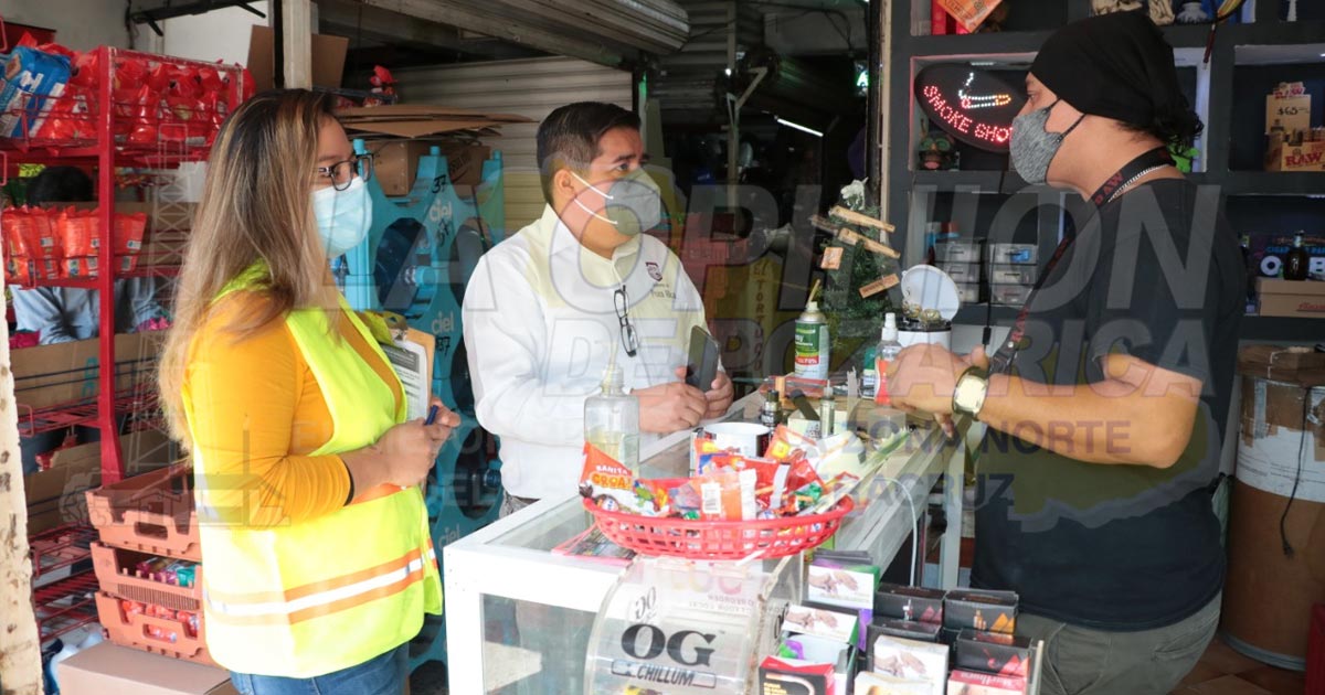 Poza Rica, Ver.- Con el fin de constatar que las unidades económicas que se encuentran operando en el municipio, se apegan a las medidas preventivas establecidas por parte de la Secretaría de Salud del Gobierno del Estado, y de esta manera evitar contagios de la enfermedad provocada por el virus Sars-Cov-2 (COVID-19), Brigadas de Supervisión Sanitaria integradas por personal de la presente administración municipal encabezada por el alcalde Francisco Javier Velázquez Vallejo, llevan a cabo recorridos en los negocios y establecimientos comerciales de la ciudad.