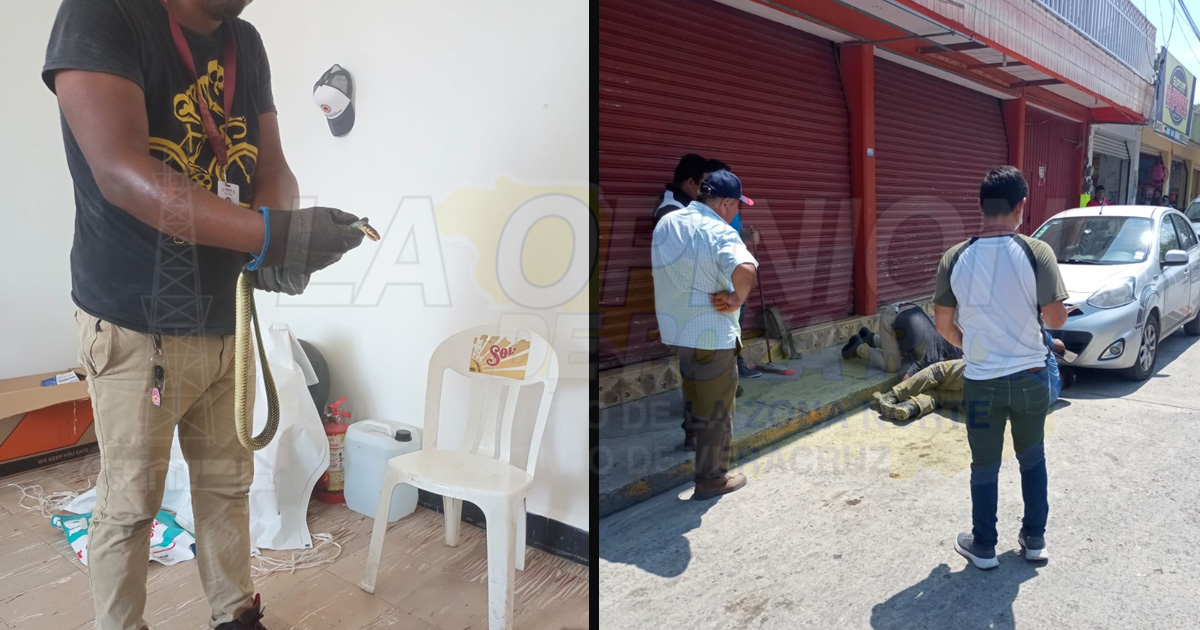 La movilización se registró la tarde del viernes en la calle Enríquez, en el primer cuadro de la ciudad, cuando el dueño de la unidad percibió ruidos extraños en el interior del cofre, en el motor de su auto Nissan, tipo March, color gris, y al buscar la causa descubrió que se trataba de un reptil.
