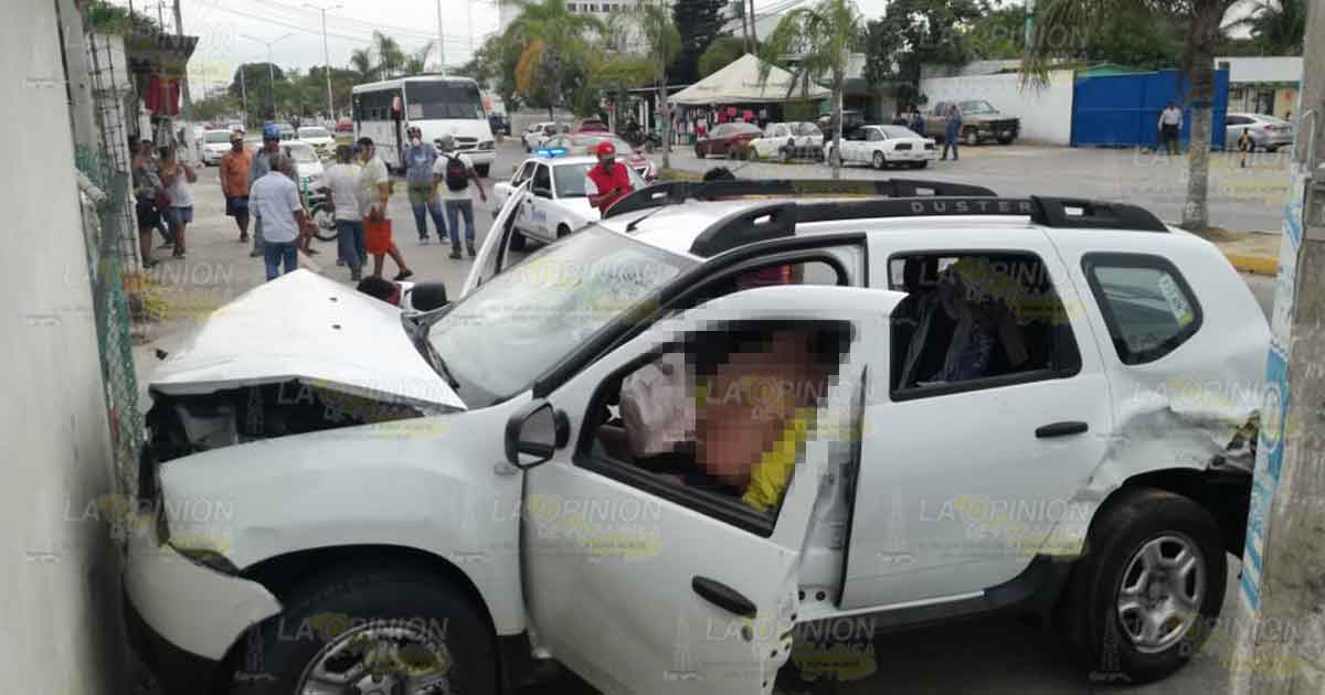 En el lugar trascendió una camioneta Renault Duster de color blanco, con placas de circulación F11AMK de la Ciudad de México, la cual se impactó contra tres vehículos antes de estrellarse en la pared de una caseta telefónica de la empresa mencionada.