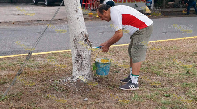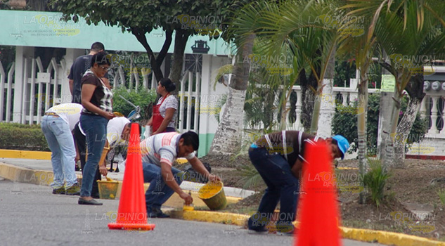 Para dar una mejor fisonomía a diferentes áreas de la ciudad, a temprana hora se llevaron a cabo labores de embellecimiento y aplicación de pintura en guarniciones en avenidas del Fraccionamiento Las Palmas.