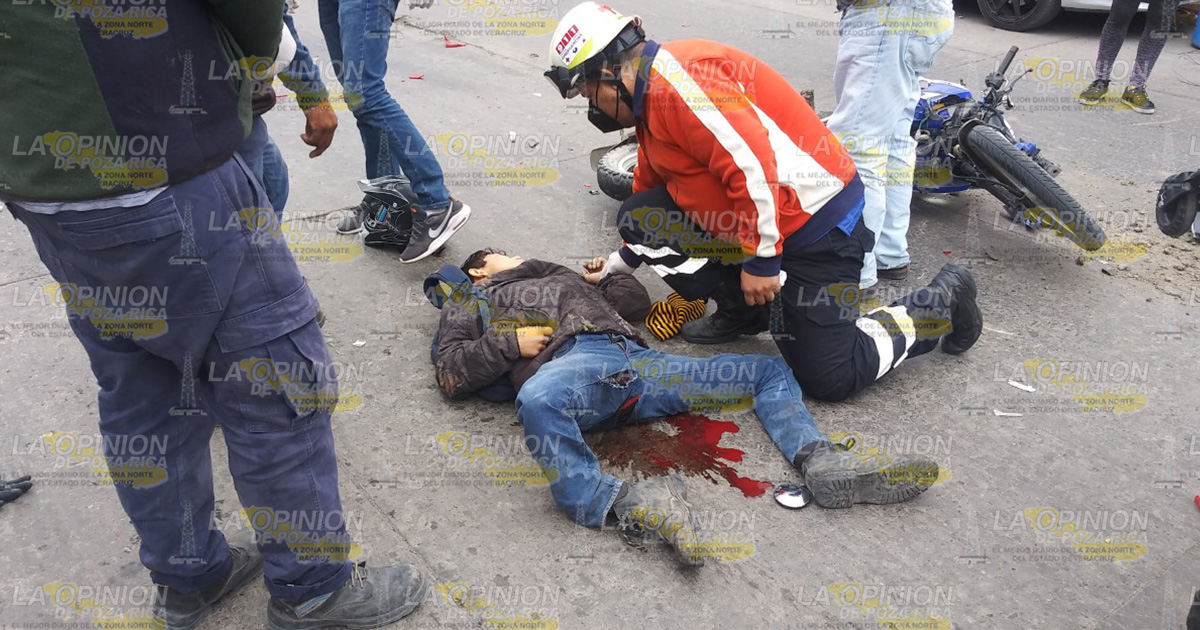 Pánuco, Ver.- Un infortunado motociclista perdió la vida de forma trágica la mañana de ayer, cuando al desplazarse a bordo de su unidad de 2 ruedas fue impactado al parecer por una camioneta que lo hizo rebotar contra un autobús, sin embargo, dicha versión tendrá que ser corroborada por las autoridades de procuración de justicia, debido a que solo se trata de lo dicho por personas que pasaban por el lugar.