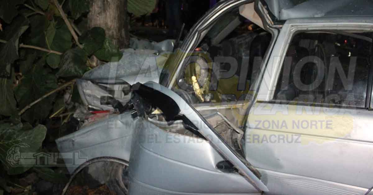 En este lamentable accidente ocurrido cerca de las 22:00 horas de la noche del viernes, viajaban tres hombres y una mujer a bordo del automóvil Nissan Tsuru y el conductor de nombre Everardo N., perdió el control de la unidad impactándose contra un árbol.